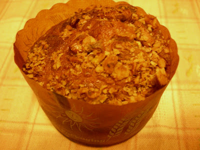 8) 將表面平均地灑上剩餘的核桃碎,烤箱預熱180°C